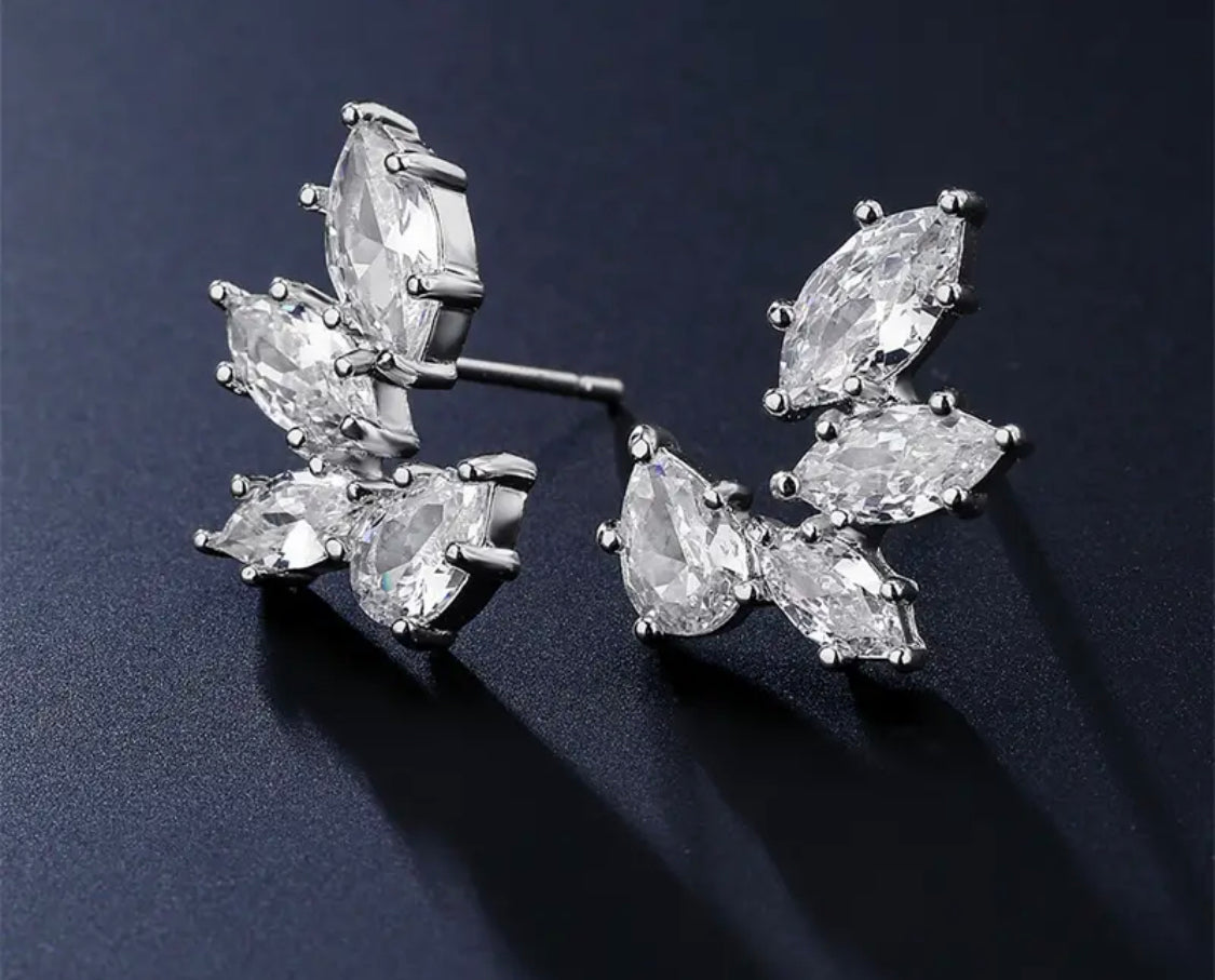 Fashion Leaf Zircon Wedding Earrings for Women White Gold Color Marquise Crystal Bridal Earring Party Jewelry Gift