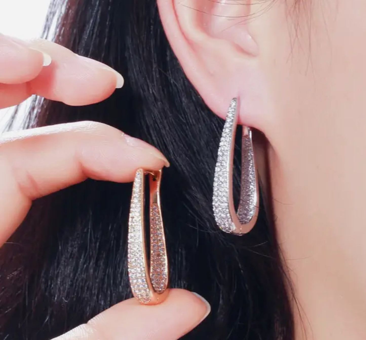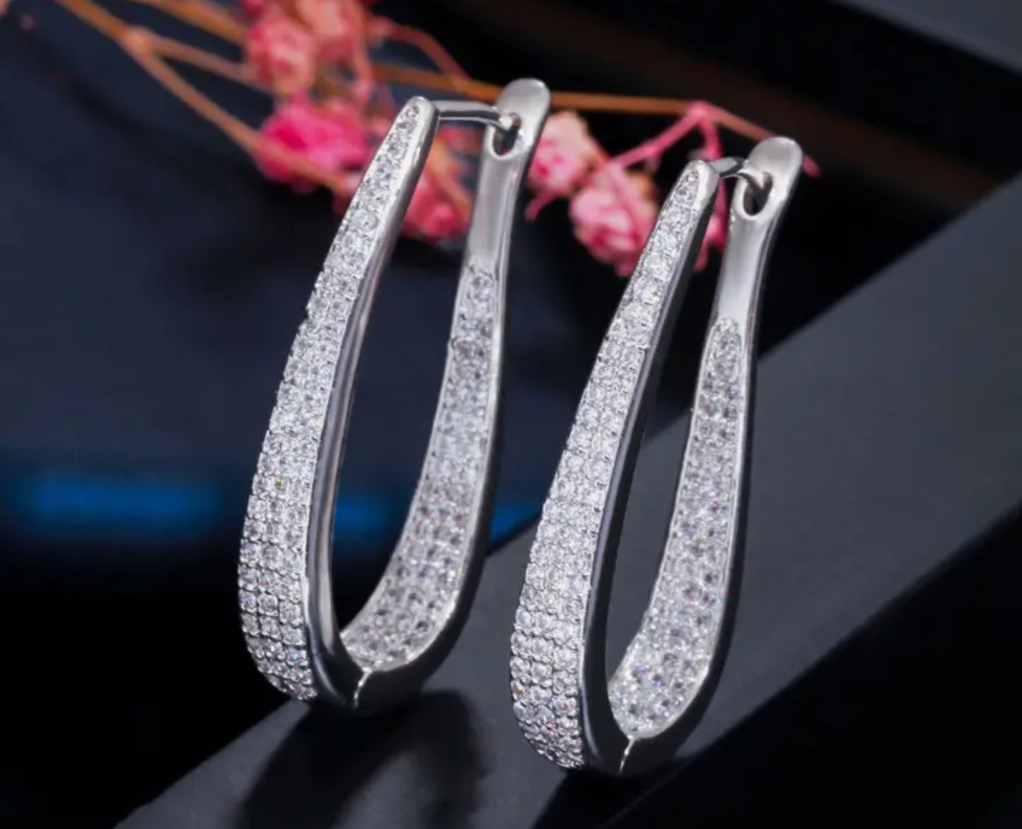 ThreeGraces Trendy Shiny White Cubic Zirconia Geometric Hoop Earrings for Women Nigerian Fashion Daily Party Jewelry