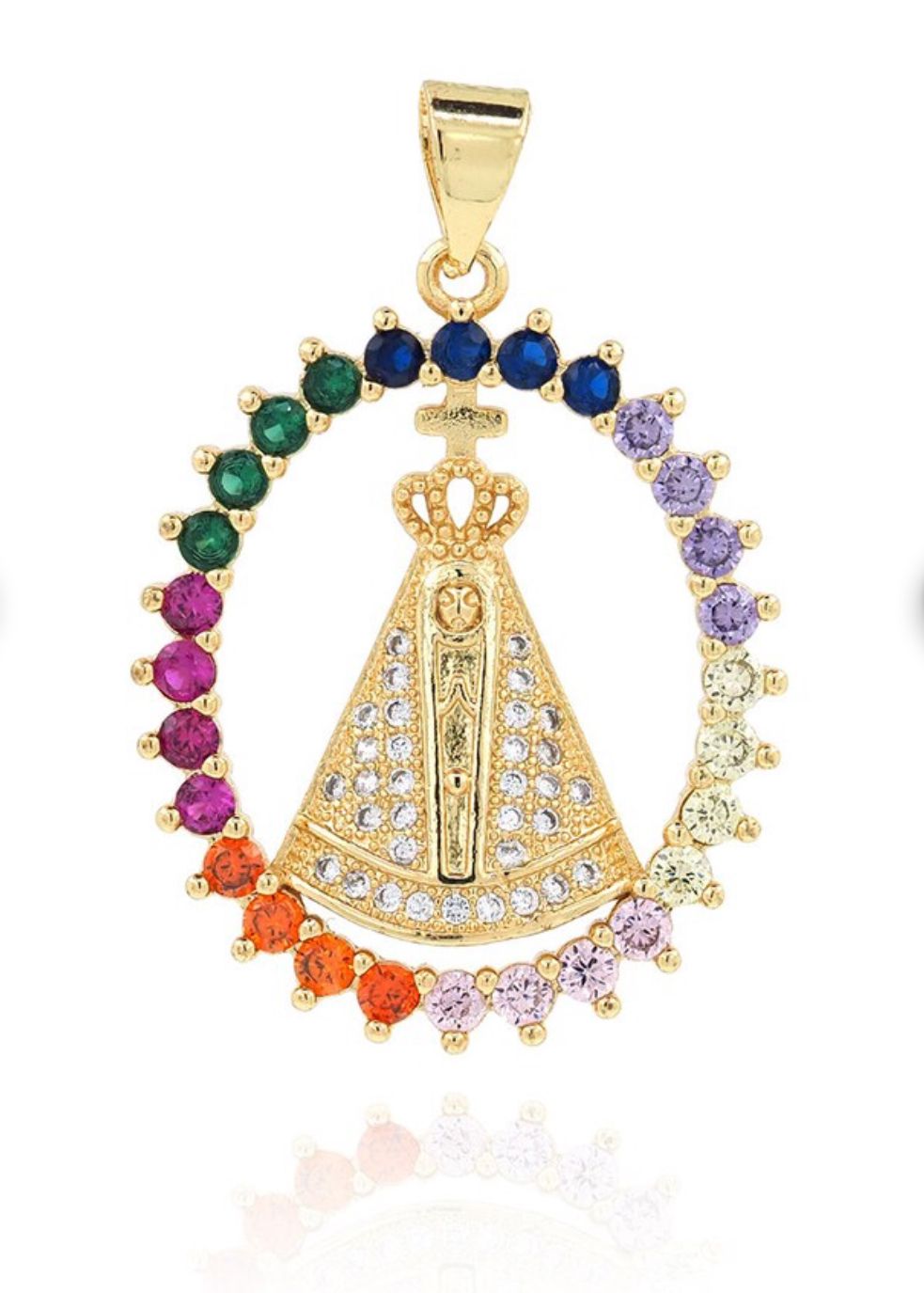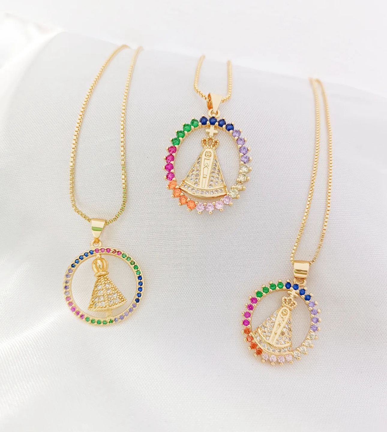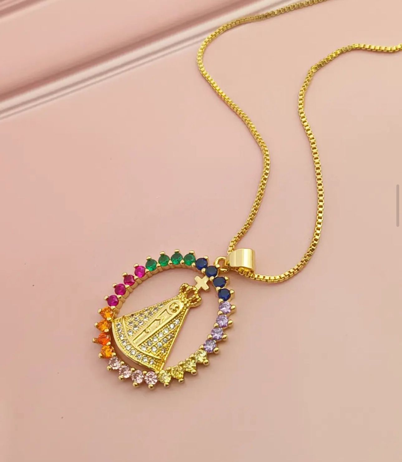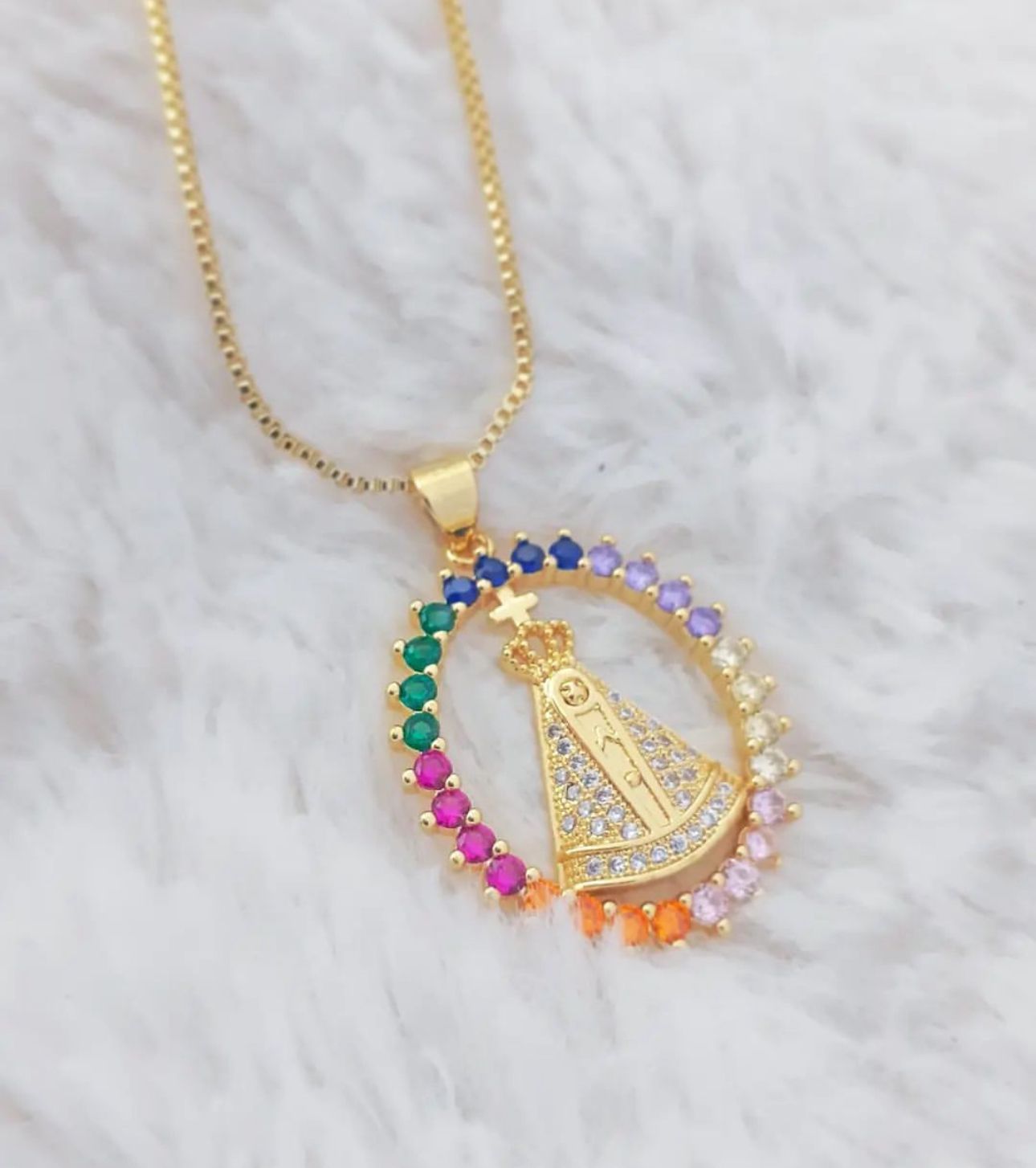 Enhance your style with our Trendy Oval Pendant. Crafted with 18K Gold Filled Catholic Charm and Micropavé CZ, this necklace beautifully showcases your faith. Stay fashion-forward while making a statement of your beliefs.