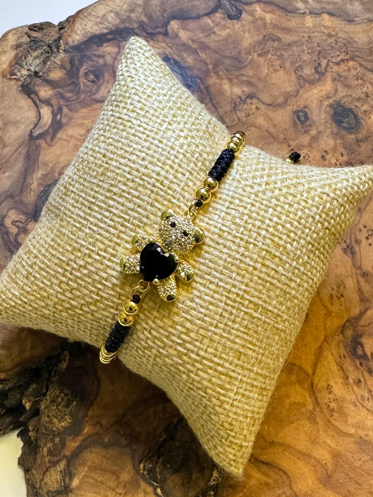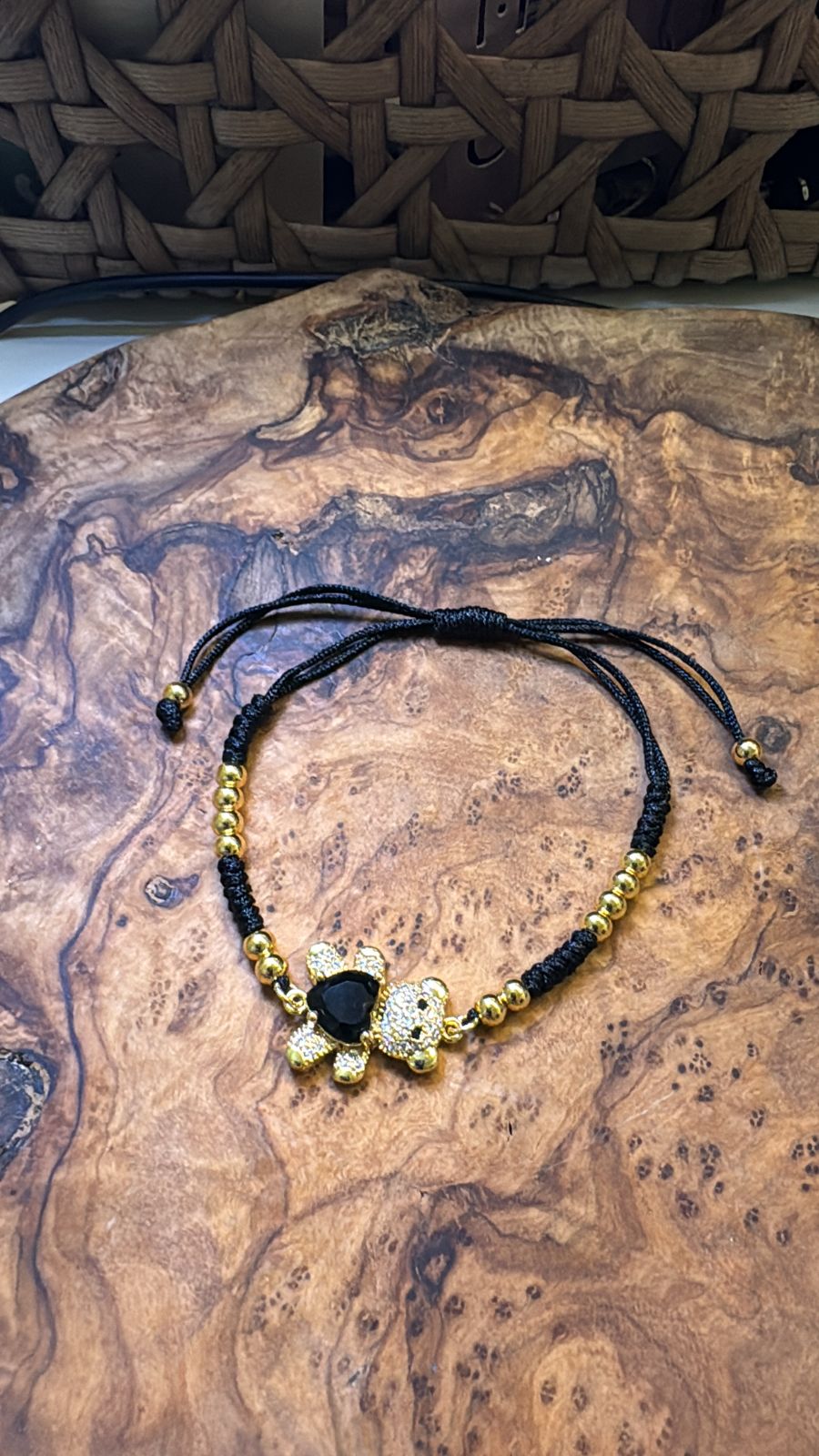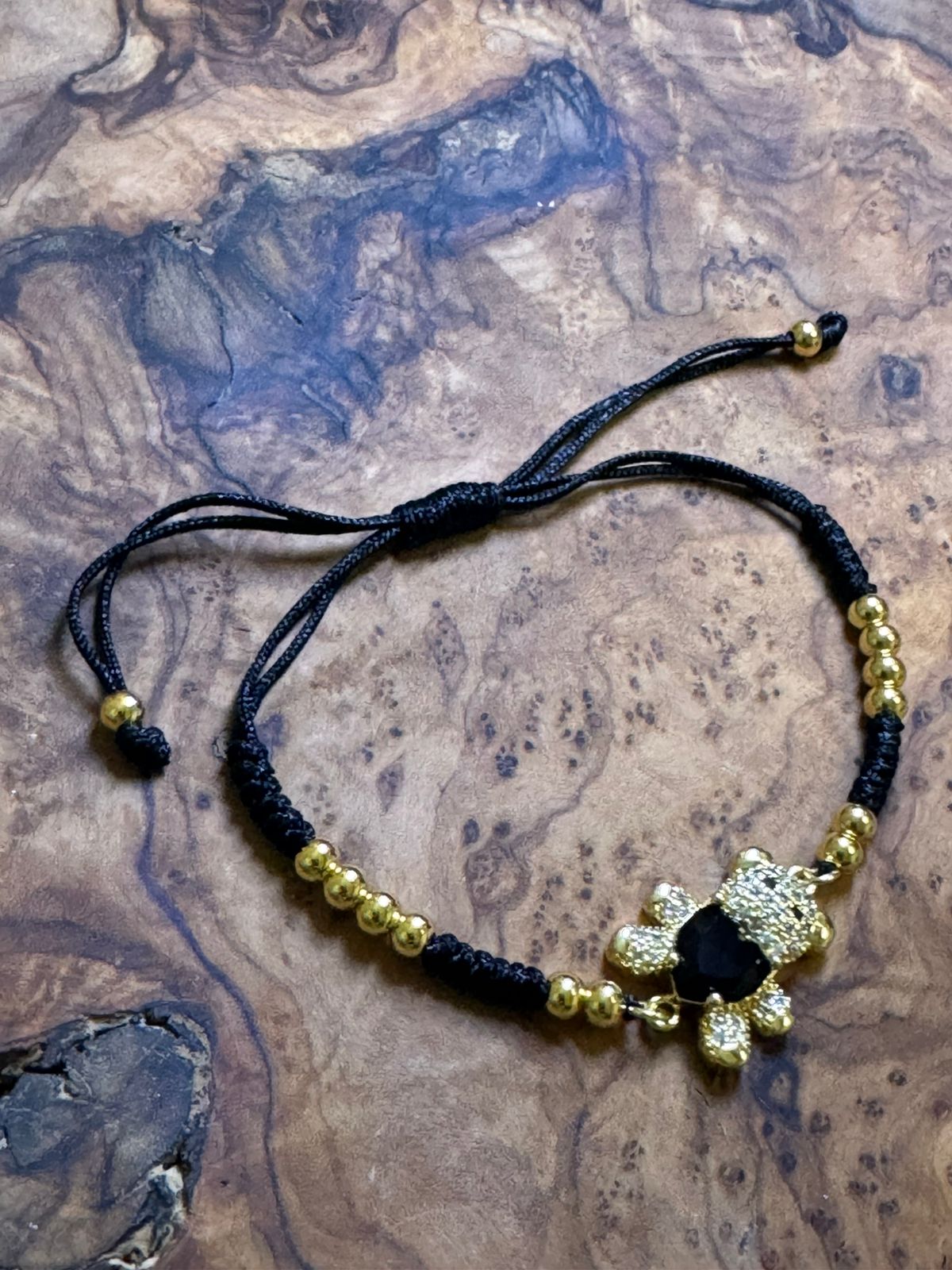 Adjustable Black Hand Rope with Inlaid Shiny CZ bear