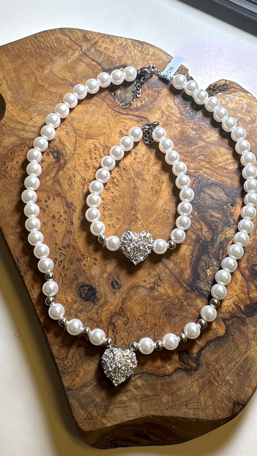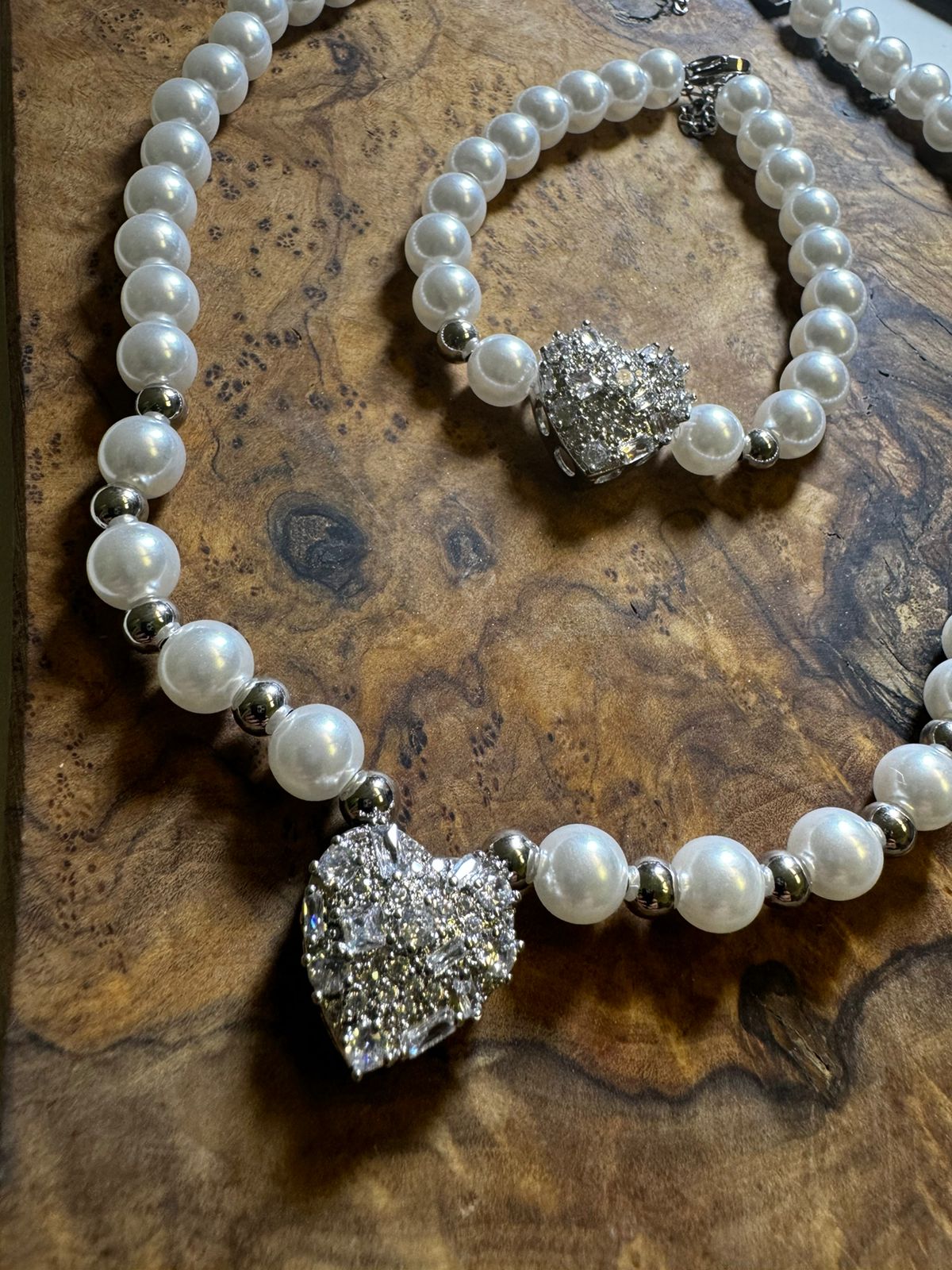 Bring your daring and adventurous spirit to the forefront with our LOVERS PEARL NECKLACE BRACELET SET! Eye-catching and bold, this platinum-plated necklace features a crystal-studded heart and linked pearls that will make a statement wherever you go. Spark your passion and stand out with this showstopper.