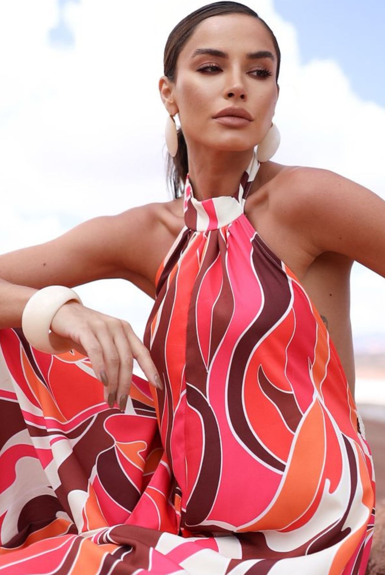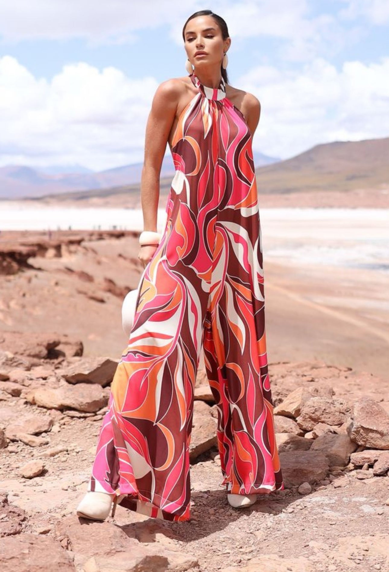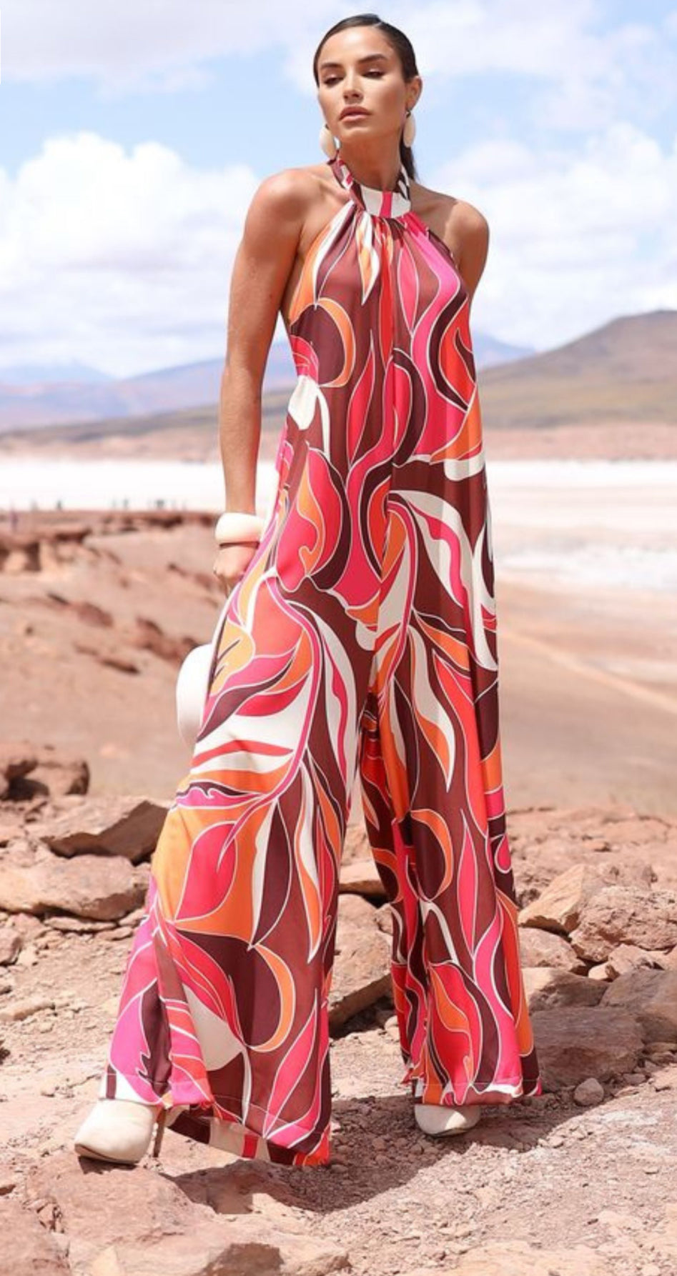 The Max Jumpsuit is the ideal choice for those seeking sophistication with a modern touch. Its design features a collar that ties at the back, creating an elegant and adjustable detail, as well as an opening at the back, which adds charm and lightness to the look.